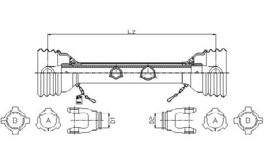 | Compressed length (Lz) center cross - center cross | Profile of inner tube yoke & bearing diameter, mm | Profile of outer tube yoke & bearing diameter, mm | Product number | ||